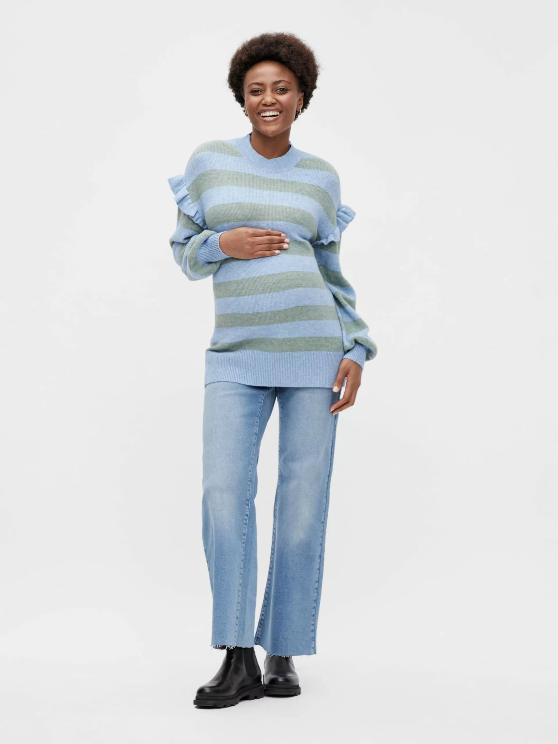 Mamalicious Fijngebreide Truien Trui Jasja Dames Lichtblauw / Lichtgrijs